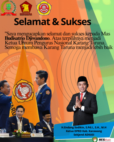 Sementara itu, Ketua DPRD Kabupaten Karawang, H. Endang Sodikin, S.Pd.I., S.H., M.H., turut menyampaikan ucapan selamat atas terpilihnya Budisatrio Djiwandono sebagai Ketua Umum Karang Taruna Nasional.