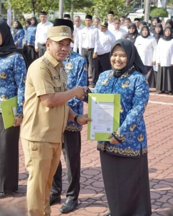KARAWANG, BERITAINDUSTRI.ID – Bupati Karawang H. Aep Syaepuloh, SE melantik dan mengambil sumpah/janji Aparatur Sipil Negara (ASN) serta menyerahkan Surat Keputusan (SK) Pegawai Pemerintah dengan Perjanjian Kerja (PPPK) Formasi 2024 Tahap II, SK CPNS menjadi PNS, serta Pejabat Fungsional di lingkungan Pemerintah Kabupaten Karawang. Kegiatan ini digelar di Plaza Pemda, Senin (22/9/2025).