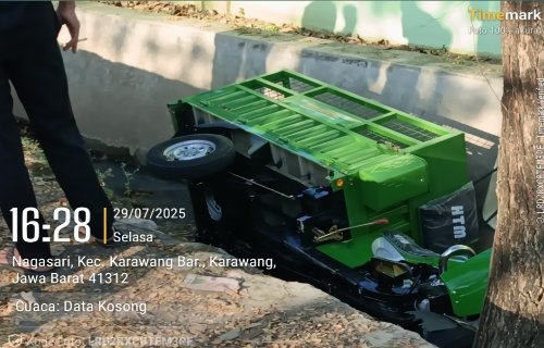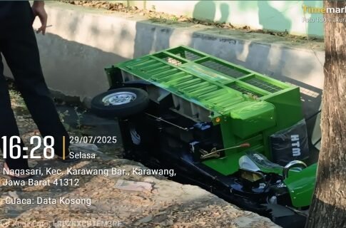 KARAWANG | BERITAINDUSTRI.ID – Sebuah kendaraan cator milik Dinas Perumahan Rakyat dan Kawasan Permukiman (PRKP) Kabupaten Karawang terperosok ke dalam saluran got di depan Markas Kodim 0604, Jalan Nagasari, Kecamatan Karawang Barat, Selasa (29/7/2025).