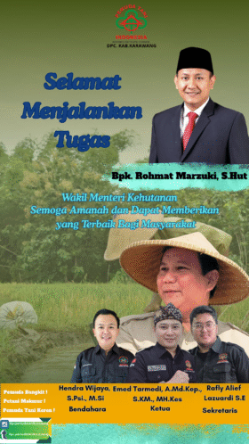 KARAWANG, BERITAINDUSTRI.ID – Keluarga besar Dewan Pengurus Cabang (DPC) Pemuda Tani Indonesia Kabupaten Karawang menyampaikan ucapan selamat dan sukses atas dilantiknya Bapak Rohmat Marzuki, S.Hut, sebagai Wakil Menteri Kehutanan di Kabinet Merah Putih.