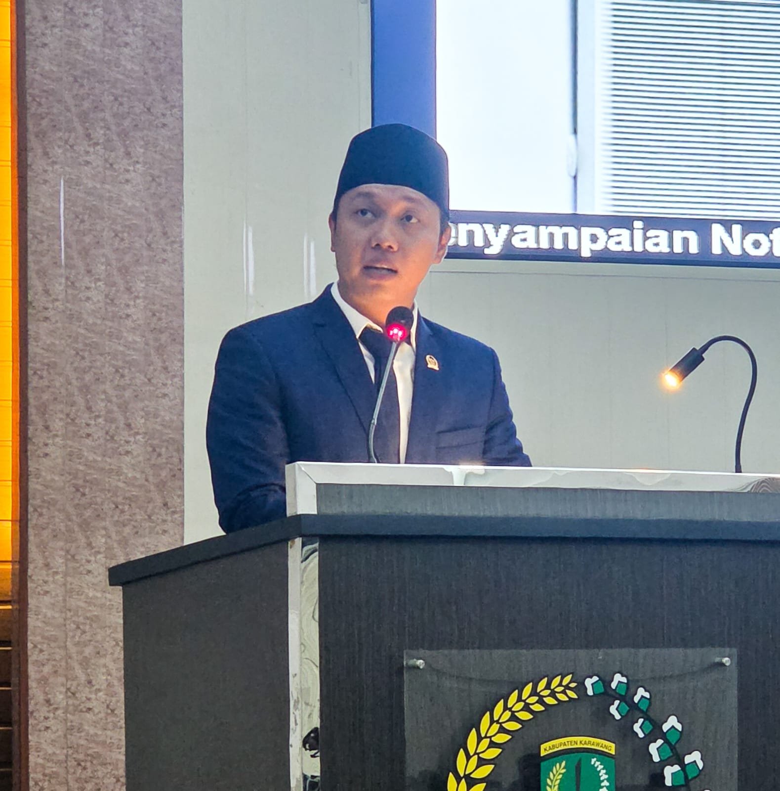 “Dari 50 anggota DPRD Kabupaten Karawang, saat masa-masa kampanye tahun lalu, banyak diantara kami pasti silaturahmi, menghadap kepada para Ustad, Ajengan, dan Kiai-Kiai pimpinan Pondok pesantren, meminta doa, restu, mungkin juga dukungan untuk mencalonkan diri sebagai anggota Dewan. Dan terbukti dari doa, restu, serta dukungan beliau-beliau kami bisa berada di forum yang terhormat ini, tentunya atas seizin Allah yang maha menjadikan,” ujarnya.