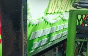 Namun di antara karangan bunga itu, satu papan berwarna hijau–merah menarik perhatian. Di bagian atasnya tertera kaligrafi “Bismillah”, sementara di tengah terpampang kalimat besar: